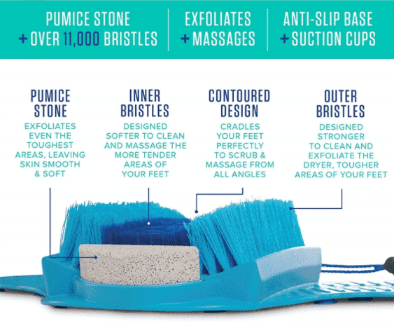 Som en extra liten smart funktion har vår Fresh Feet fotskrubbare/borste en smart slipsten inbyggd, som masserar och filar fötterna innan problemen utvecklas.