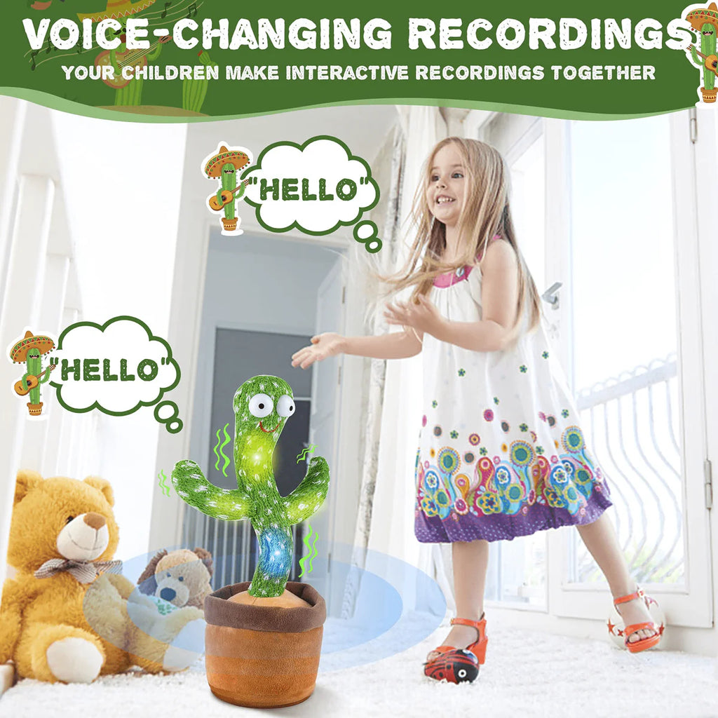 Dansande Kaktus: 120 sånger, upprepar tal, ljuseffekt, USB-laddning