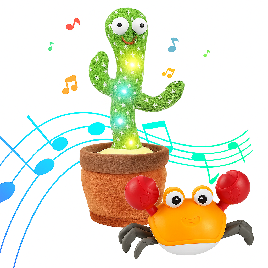 Leksaks-Bundle: Sjungande kaktus & glad babykrabba