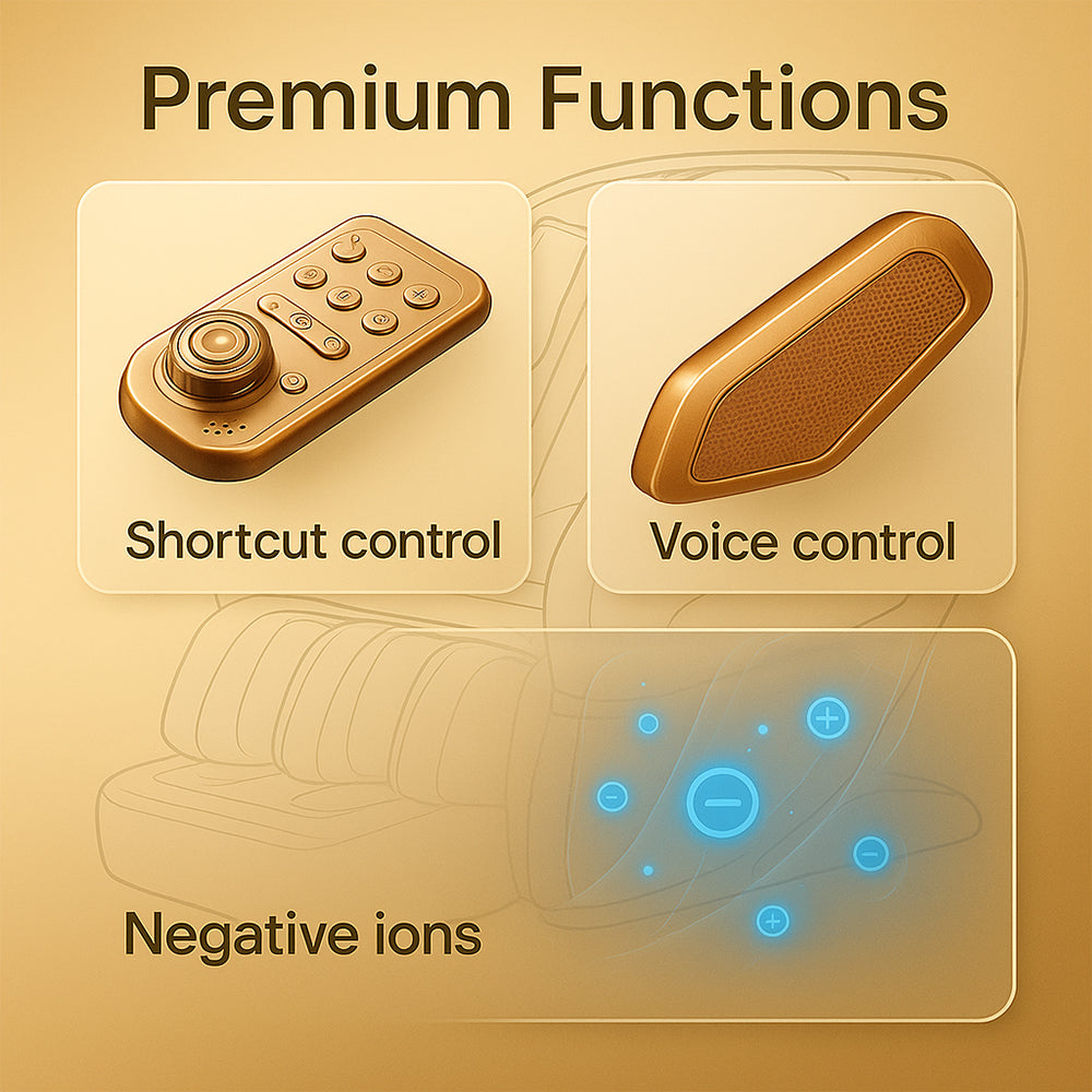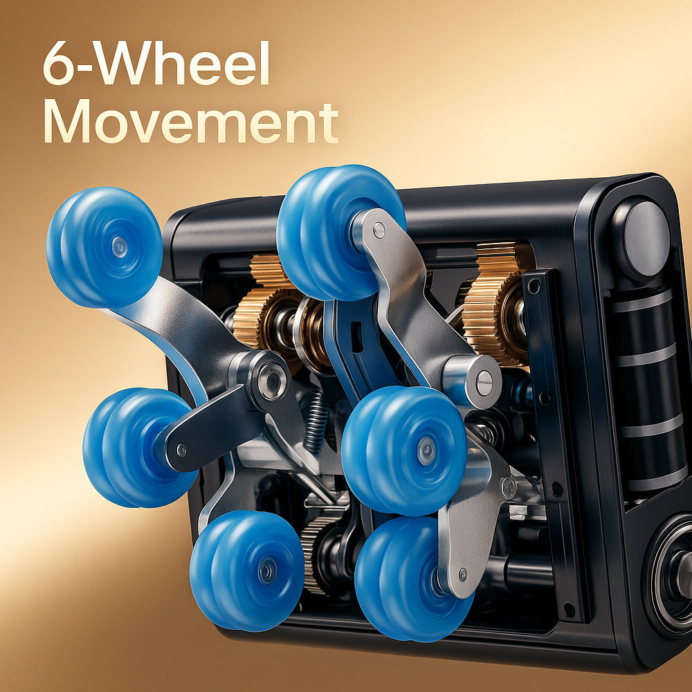 Massageskenor: • S-track: Fokus på rygg och ländrygg – kort bana • L-track: Längre bana – rygg + säte • SL-track: Kombination – följer ryggradens kurva och fortsätter ner till säte • Fasta massagezoner: Kulorna masserar bestämda områden utan skena (t.ex. modell S9C) |